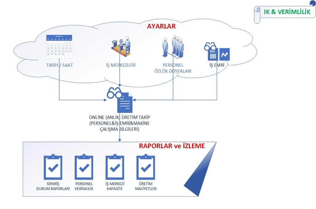 Üretimin Online takibi ile Verimlilik ve bilgiye hızlı erişim sağlanır.